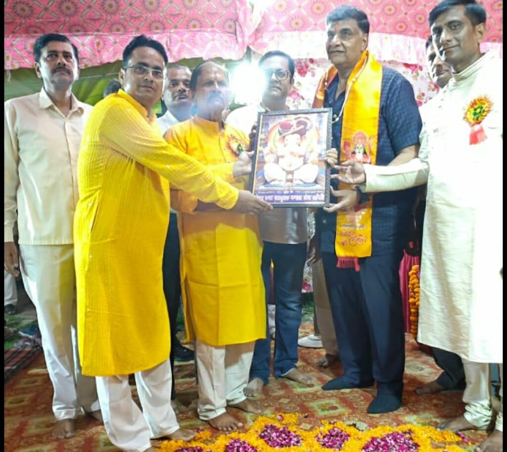 पिछले 14 सालों से महानगर में अपनी अमिट छाप बनाने वाला अखबार पारदर्शी विकास न्यूज के वरिष्ठ पत्रकार व संपादक सुशील कुमार ने भी पंडाल में पहुंचकर गजाजन ने आशीर्वाद लिया। कार्यक्रम की भूरि-भूरि प्रशंसा करते हुए कहा कि युवाओं की यह पहल शानदार है। ऐसे प्रोग्राम से समाज एकजुट होता है। इसलिए समाज को एकसूत्र में पिराने के लिए समय-समय पर ऐसे आयोजन होते रहने चालिए। समिति संरक्षक मंडल के सदस्य व शिक्षक ललित बाजपेयी ने उन्हें गजानन की तस्वीर देकर सम्मान किया।